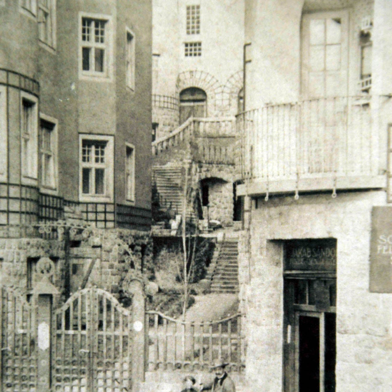 By the end of January 1945, two weeks before the end of the siege of Budapest, the Komor side was hit by a bomb. The upper part, including the apartment of the Komor estate, was completely burned down.